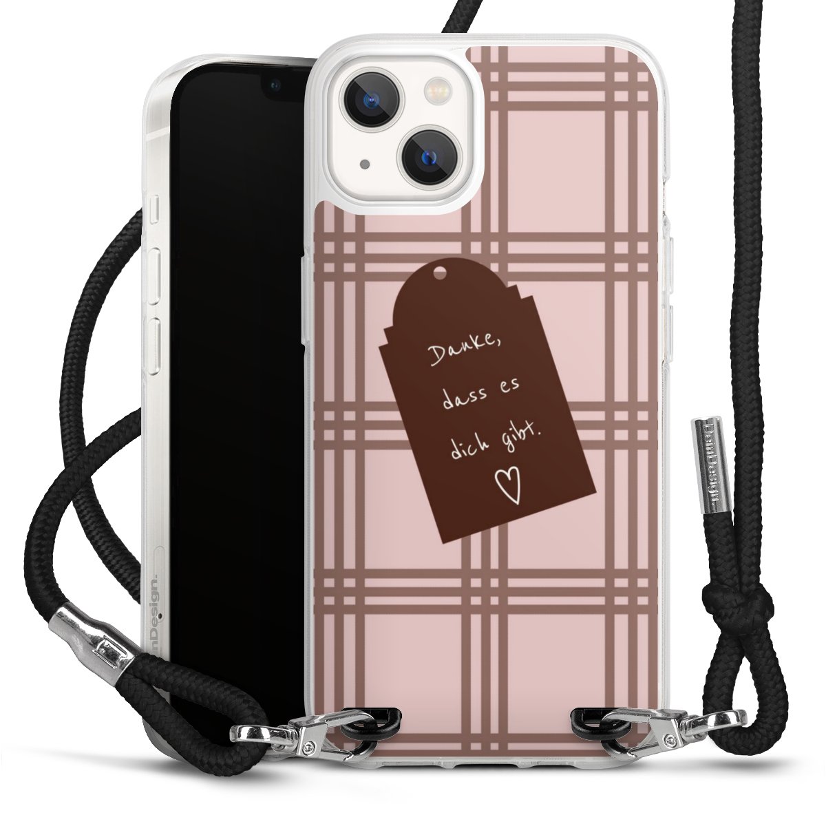 Habe Dein Handy, dank der flexiblen Silikon Handyhülle zum Umhängen mit der Handykette aus Stoff, immer griffbereit.