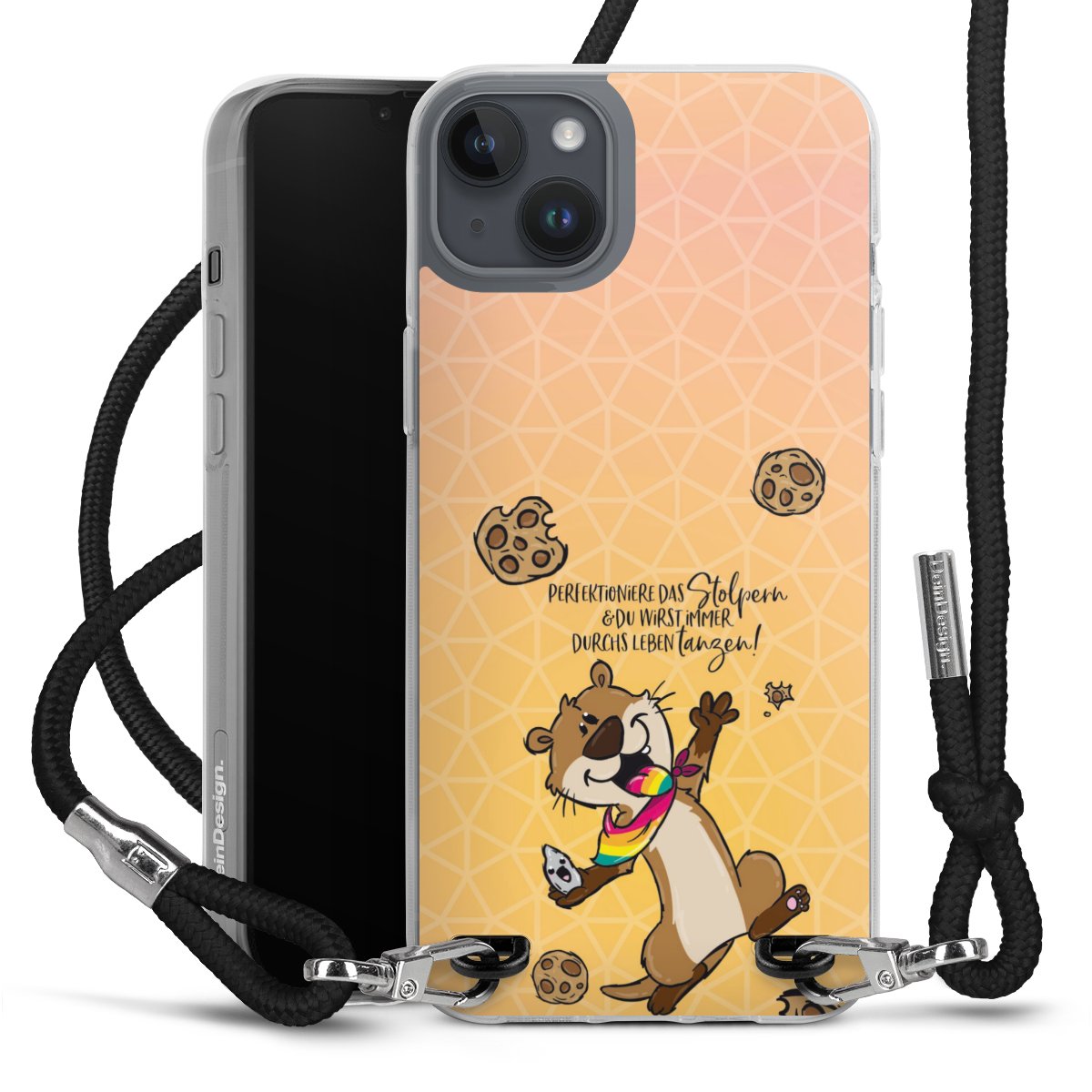 Habe Dein Handy, dank der flexiblen Silikon Handyhülle zum Umhängen mit der Handykette aus Stoff, immer griffbereit.