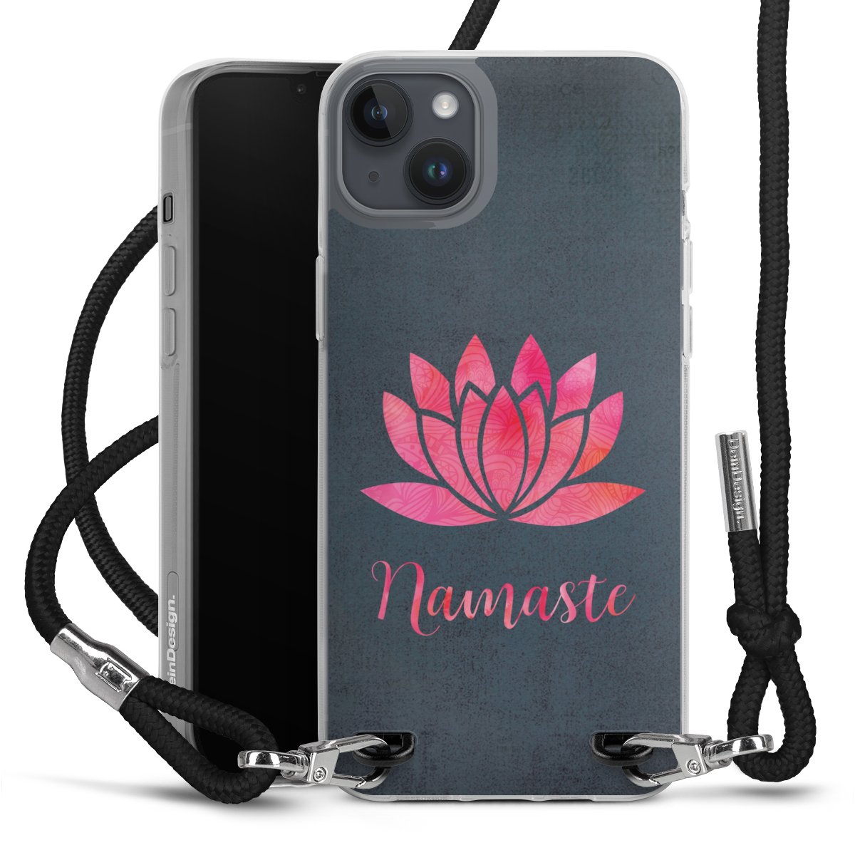 Habe Dein Handy, dank der flexiblen Silikon Handyhülle zum Umhängen mit der Handykette aus Stoff, immer griffbereit.