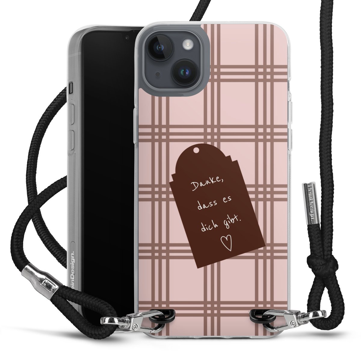 Habe Dein Handy, dank der flexiblen Silikon Handyhülle zum Umhängen mit der Handykette aus Stoff, immer griffbereit.