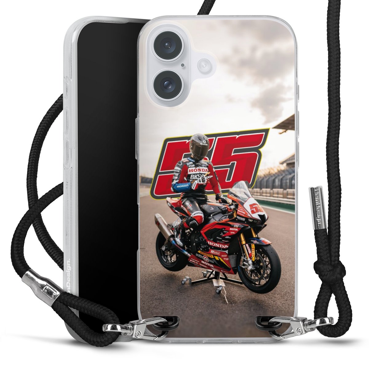 Bei dieser Handyhülle nutzen wir das solide Direktdruck-Verfahren, weshalb der Druckbereich ausschließlich die Rückseite umfasst und der Rand hingegen unbedruckt bleibt. Das Case zum Umhängen kann sowohl unbedruckt, als auch vollflächig oder partiell bedruckt bestellt werden. Wähle für Dein Design entweder eines unserer exklusiven Shop-Motive, oder werde kreativ und gestalte Dein Wunschdesign zum Beispiel mit Fotos und Overlays selbst. Designe Dir Dein persönliches Trend-Accessoire und setze ein individuelles Statement auf den Straßen!