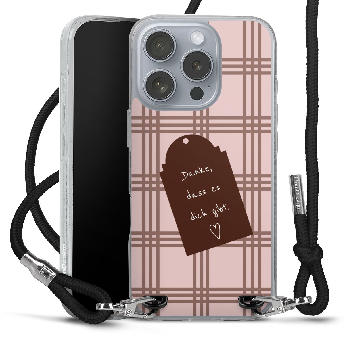 Habe Dein Handy, dank der flexiblen Silikon Handyhülle zum Umhängen mit der Handykette aus Stoff, immer griffbereit.