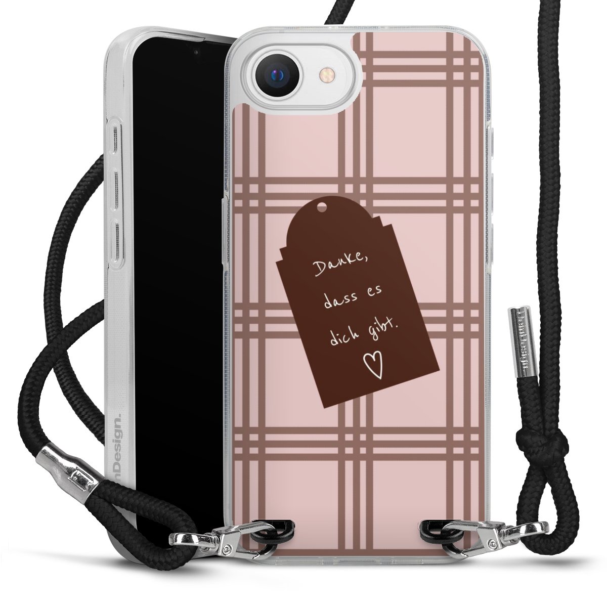 Habe Dein Handy, dank der flexiblen Silikon Handyhülle zum Umhängen mit der Handykette aus Stoff, immer griffbereit.