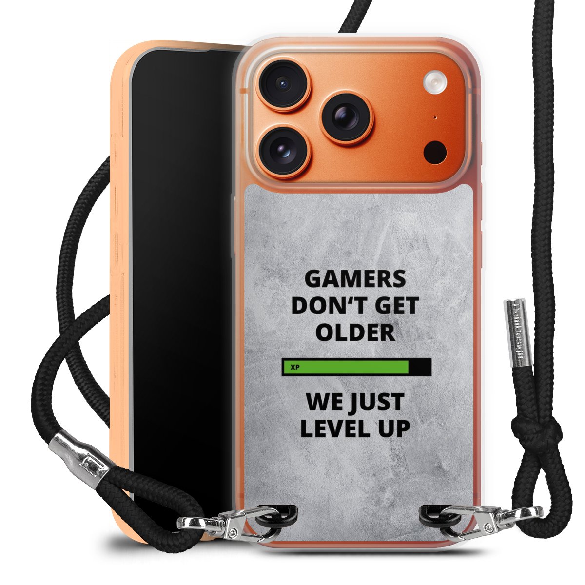 Habe Dein Handy, dank der flexiblen Silikon Handyhülle zum Umhängen mit der Handykette aus Stoff, immer griffbereit.