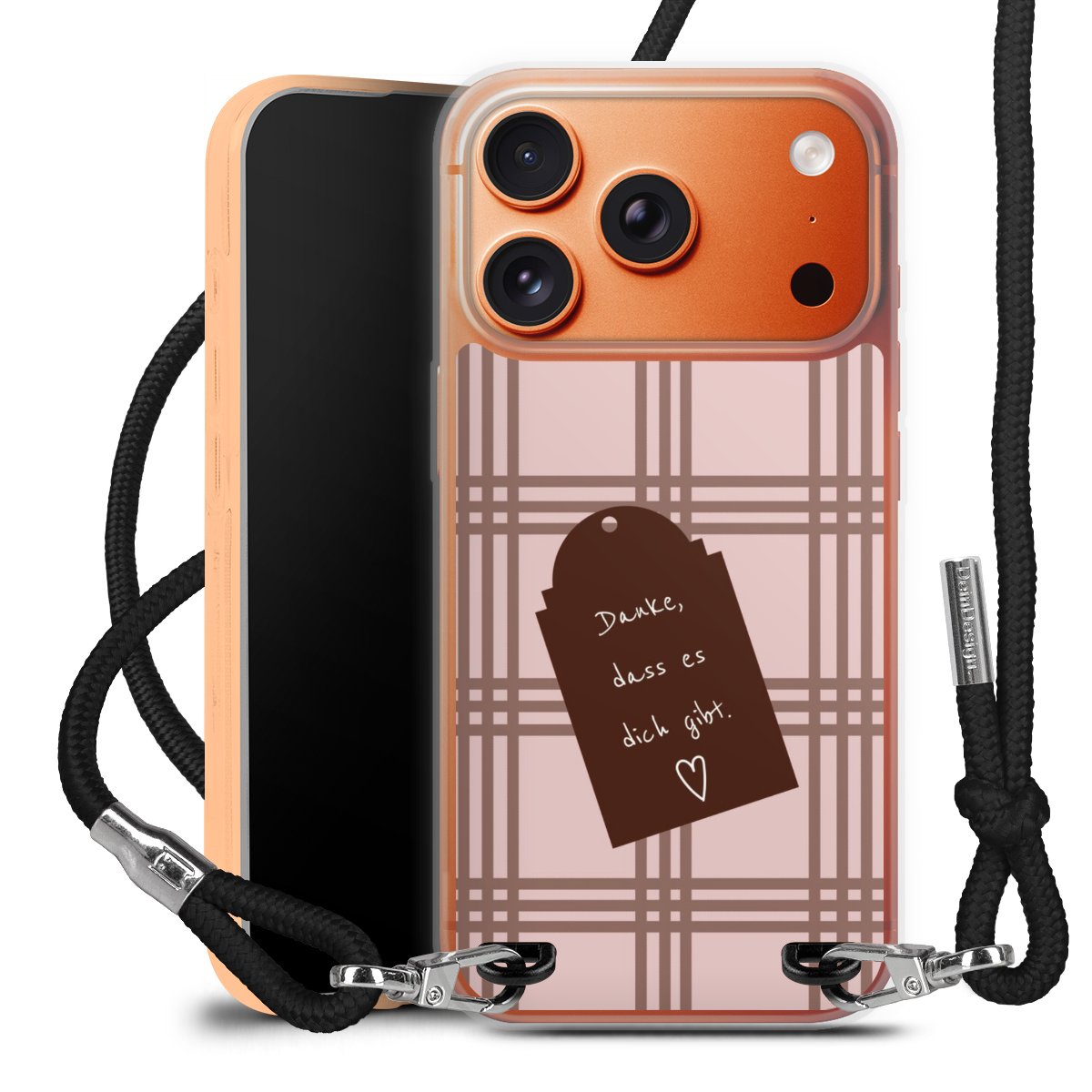 Habe Dein Handy, dank der flexiblen Silikon Handyhülle zum Umhängen mit der Handykette aus Stoff, immer griffbereit.