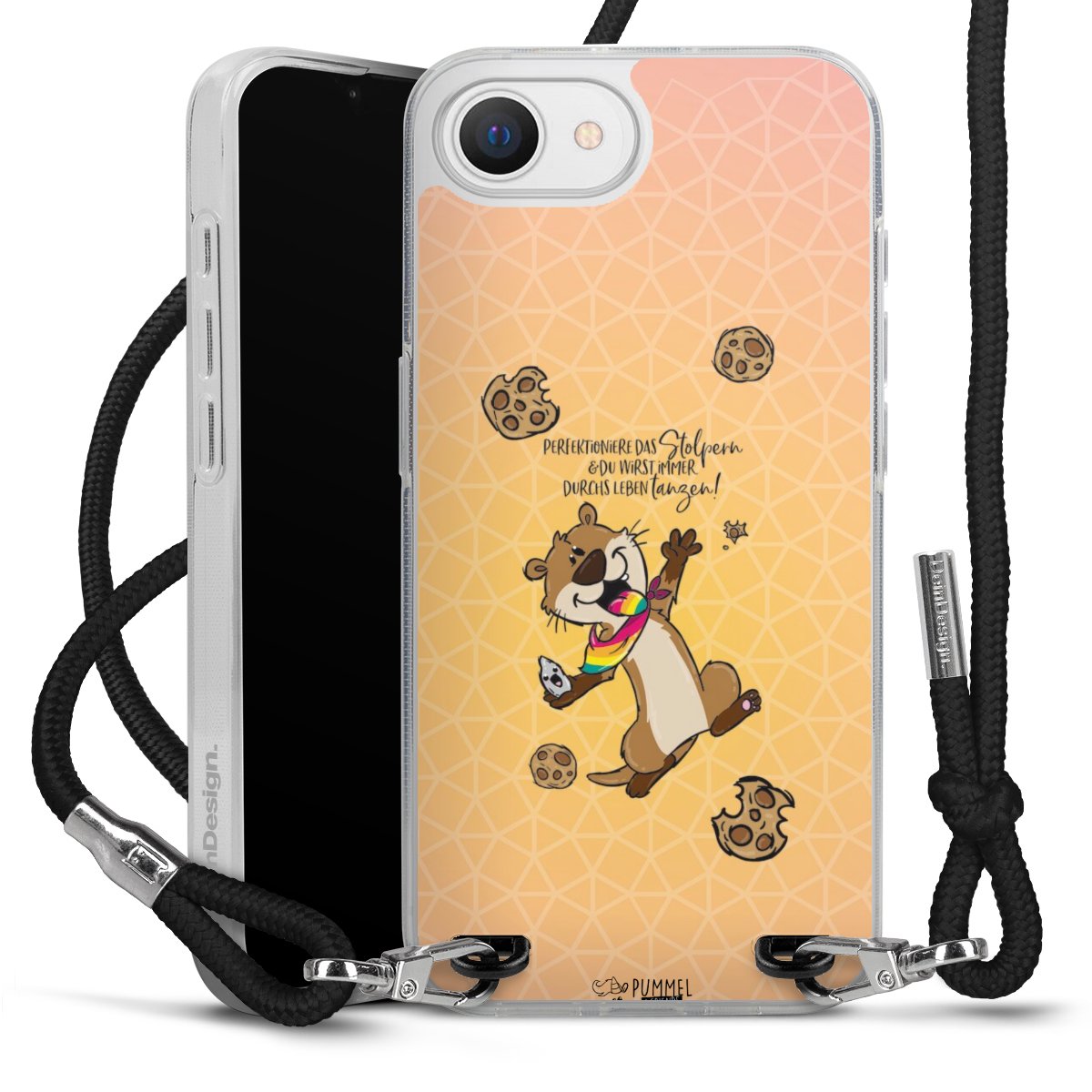Habe Dein Handy, dank der flexiblen Silikon Handyhülle zum Umhängen mit der Handykette aus Stoff, immer griffbereit.
