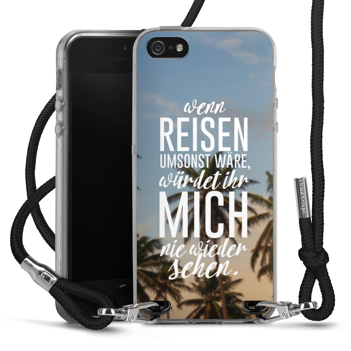 Bei dieser Handyhülle nutzen wir das solide Direktdruck-Verfahren, weshalb der Druckbereich ausschließlich die Rückseite umfasst und der Rand hingegen unbedruckt bleibt. Das Case zum Umhängen kann sowohl unbedruckt, als auch vollflächig oder partiell bedruckt bestellt werden. Wähle für Dein Design entweder eines unserer exklusiven Shop-Motive, oder werde kreativ und gestalte Dein Wunschdesign zum Beispiel mit Fotos und Overlays selbst. Designe Dir Dein persönliches Trend-Accessoire und setze ein individuelles Statement auf den Straßen!
