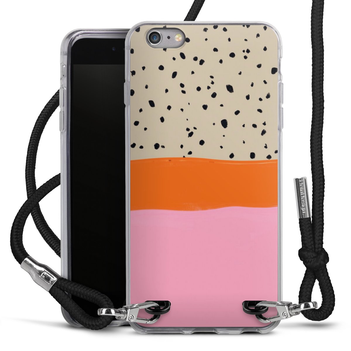 Habe Dein Handy, dank der flexiblen Silikon Handyhülle zum Umhängen mit der Handykette aus Stoff, immer griffbereit.