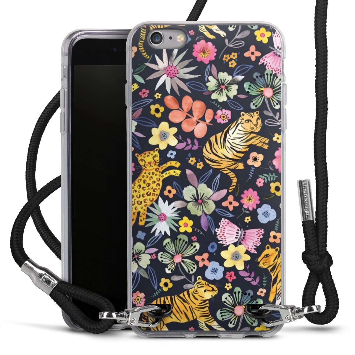 Habe Dein Handy, dank der flexiblen Silikon Handyhülle zum Umhängen mit der Handykette aus Stoff, immer griffbereit.