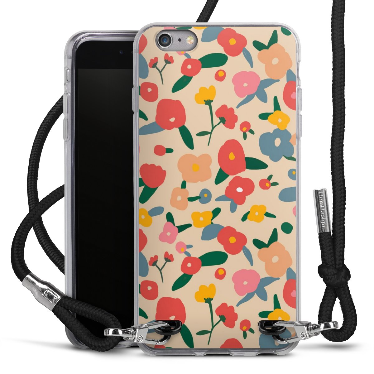 Habe Dein Handy, dank der flexiblen Silikon Handyhülle zum Umhängen mit der Handykette aus Stoff, immer griffbereit.