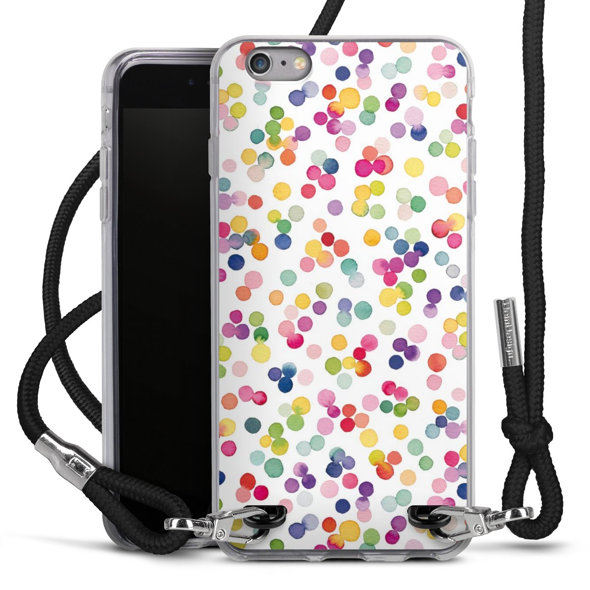 Habe Dein Handy, dank der flexiblen Silikon Handyhülle zum Umhängen mit der Handykette aus Stoff, immer griffbereit.