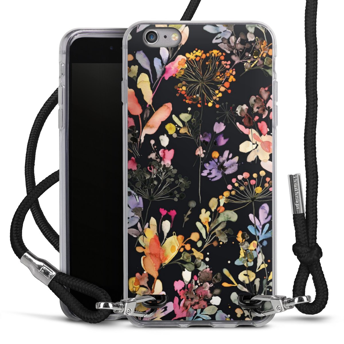 Habe Dein Handy, dank der flexiblen Silikon Handyhülle zum Umhängen mit der Handykette aus Stoff, immer griffbereit.