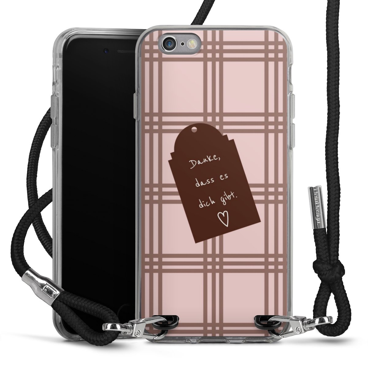 Habe Dein Handy, dank der flexiblen Silikon Handyhülle zum Umhängen mit der Handykette aus Stoff, immer griffbereit.
