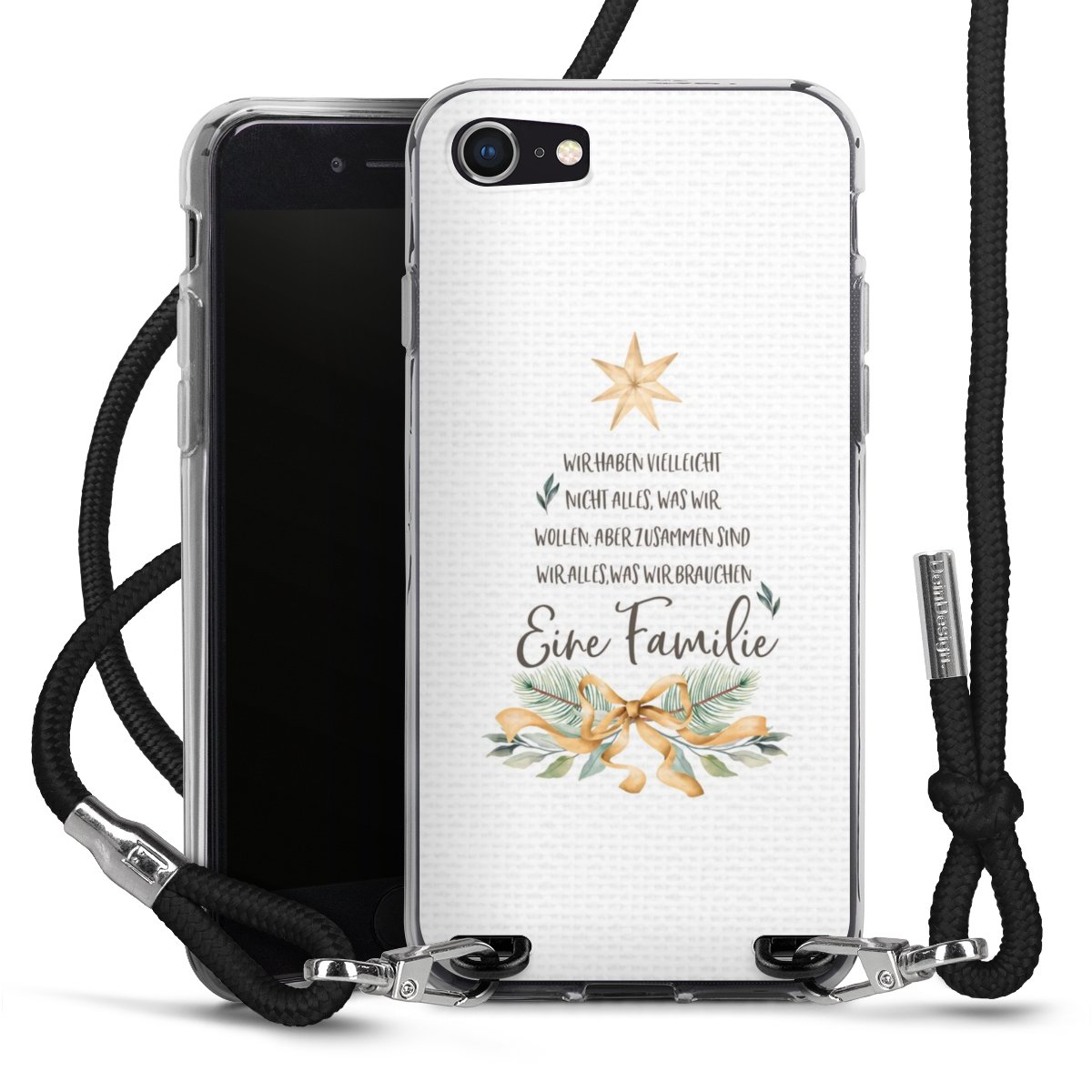 Die transparente Silikonhülle besteht aus flexiblen TPU (thermoplastisches Polyurethan) und bietet zugleich robusten Schutz. Durch das langlebige, bruchsichere Material ist die Hülle biegsam und formbeständig zugleich. Das stylische Trend-Accessoire liegt griffig in der Hand und wird optimal von der Handykette aus Stoff (Polyester) ergänzt. Das geflochtene Stoffband ist ca. 1,70 Meter lang mit einem Durchmesser von ca. 0,5cm. Aufgrund der besonderen Knotentechnik ist das Band durch einfaches Ziehen in der Länge verstellbar, damit Du es individuell nach Deinen Wünschen anpassen kannst. Das praktische Case zum Umhängen ist mit dem Stoffband in den Farben Schwarz, Rot, Rosa, Grau, Senfgelb, Bordeaux und Royalblau erhältlich. Die Enden des Stoffbandes sind mit metallischen Endkappen umfasst und somit sicher vor dem Ausfransen geschützt.