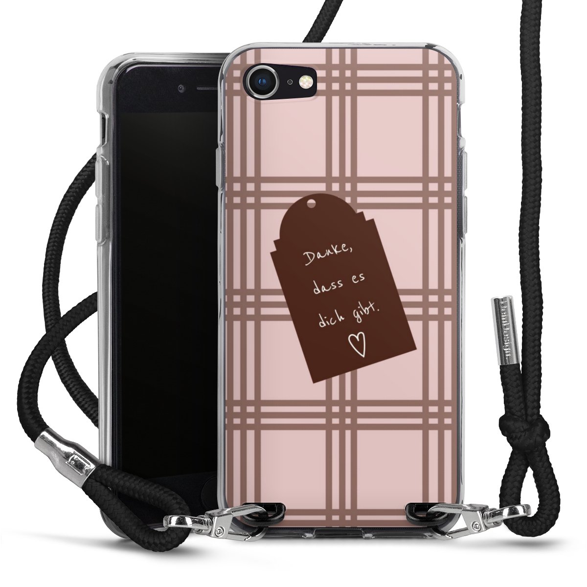 Habe Dein Handy, dank der flexiblen Silikon Handyhülle zum Umhängen mit der Handykette aus Stoff, immer griffbereit.
