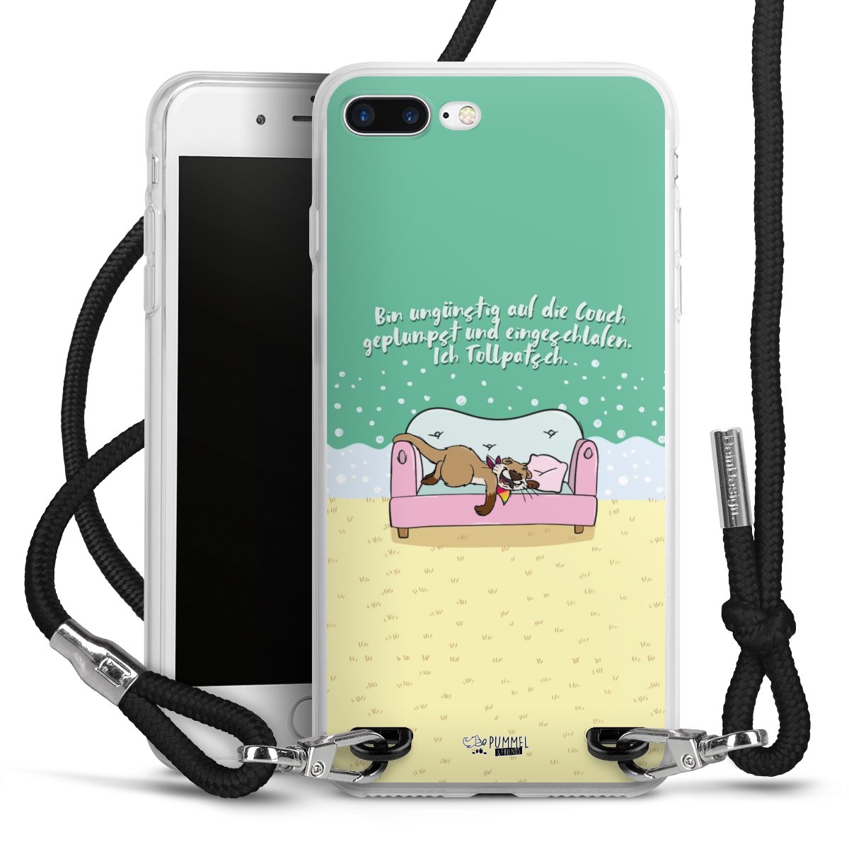 Habe Dein Handy, dank der flexiblen Silikon Handyhülle zum Umhängen mit der Handykette aus Stoff, immer griffbereit.