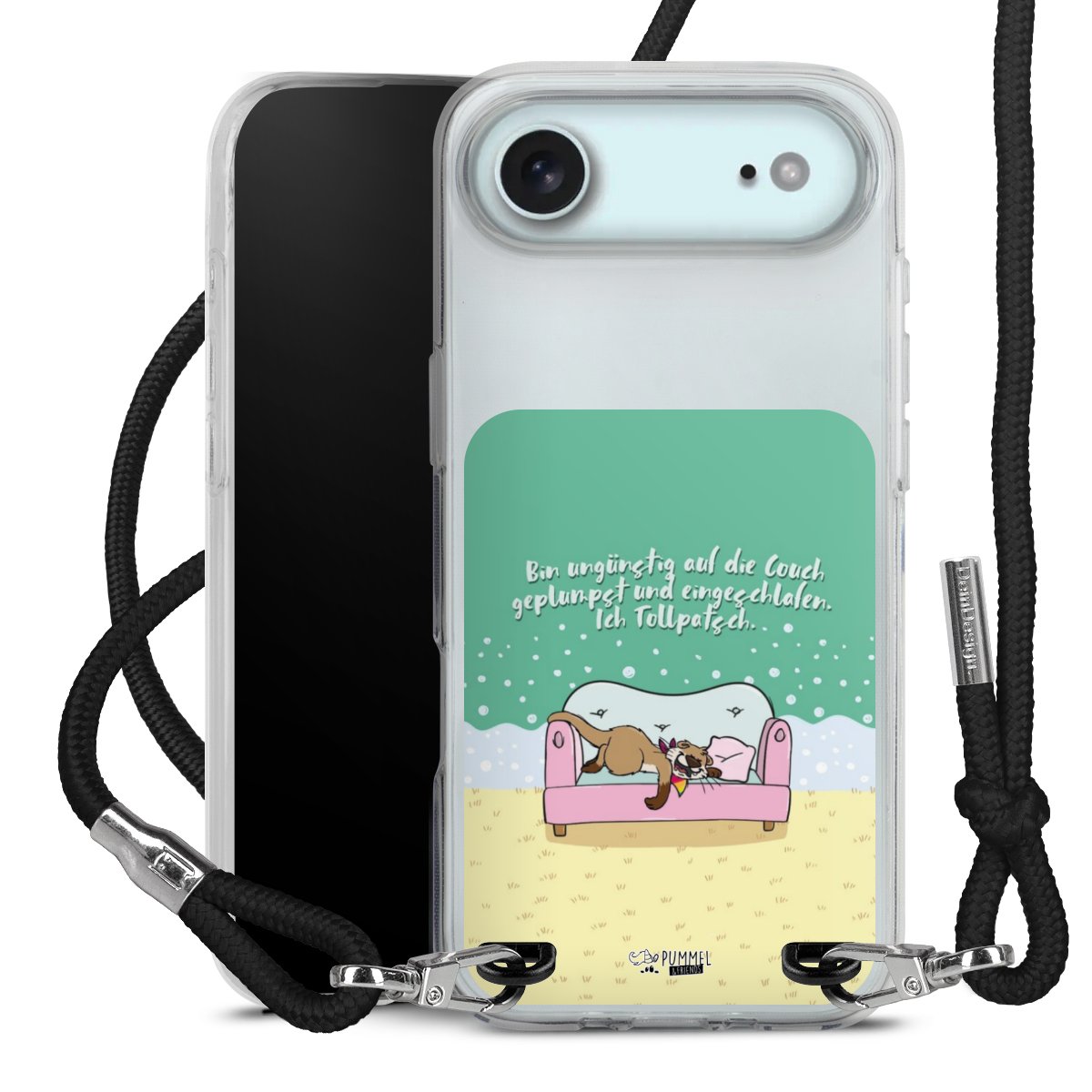 Habe Dein Handy, dank der flexiblen Silikon Handyhülle zum Umhängen mit der Handykette aus Stoff, immer griffbereit.