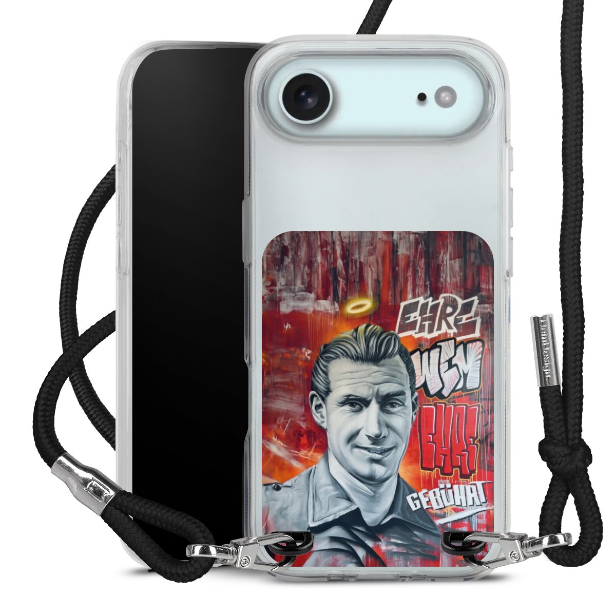 Bei dieser Handyhülle nutzen wir das solide Direktdruck-Verfahren, weshalb der Druckbereich ausschließlich die Rückseite umfasst und der Rand hingegen unbedruckt bleibt. Das Case zum Umhängen kann sowohl unbedruckt, als auch vollflächig oder partiell bedruckt bestellt werden. Wähle für Dein Design entweder eines unserer exklusiven Shop-Motive, oder werde kreativ und gestalte Dein Wunschdesign zum Beispiel mit Fotos und Overlays selbst. Designe Dir Dein persönliches Trend-Accessoire und setze ein individuelles Statement auf den Straßen!