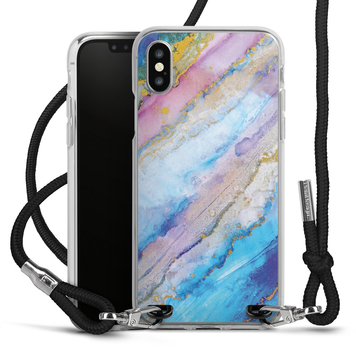 Bei dieser Handyhülle nutzen wir das solide Direktdruck-Verfahren, weshalb der Druckbereich ausschließlich die Rückseite umfasst und der Rand hingegen unbedruckt bleibt. Das Case zum Umhängen kann sowohl unbedruckt, als auch vollflächig oder partiell bedruckt bestellt werden. Wähle für Dein Design entweder eines unserer exklusiven Shop-Motive, oder werde kreativ und gestalte Dein Wunschdesign zum Beispiel mit Fotos und Overlays selbst. Designe Dir Dein persönliches Trend-Accessoire und setze ein individuelles Statement auf den Straßen!