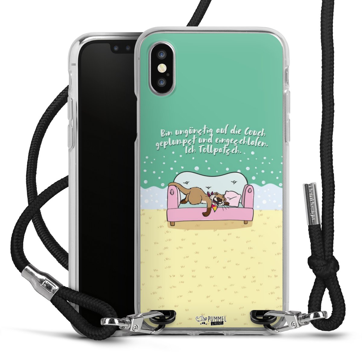 Habe Dein Handy, dank der flexiblen Silikon Handyhülle zum Umhängen mit der Handykette aus Stoff, immer griffbereit.