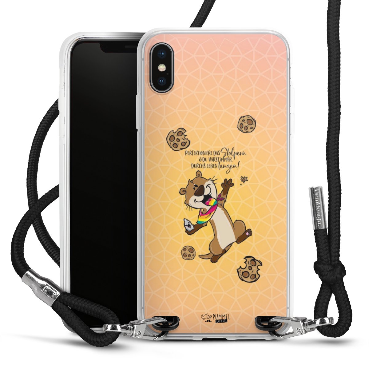 Habe Dein Handy, dank der flexiblen Silikon Handyhülle zum Umhängen mit der Handykette aus Stoff, immer griffbereit.