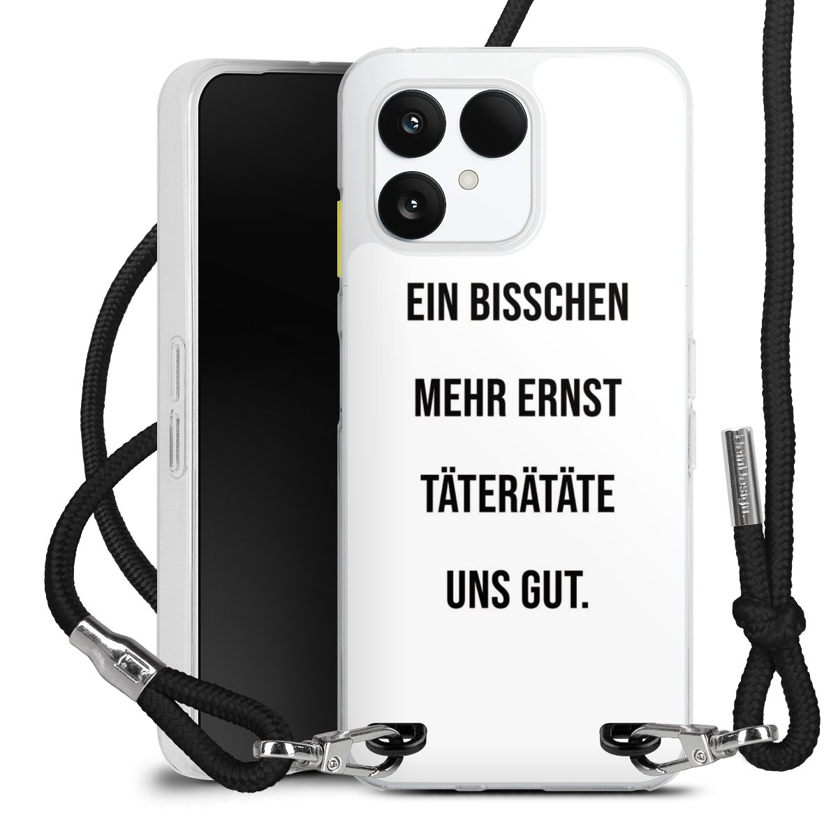 Habe Dein Handy, dank der flexiblen Silikon Handyhülle zum Umhängen mit der Handykette aus Stoff, immer griffbereit.