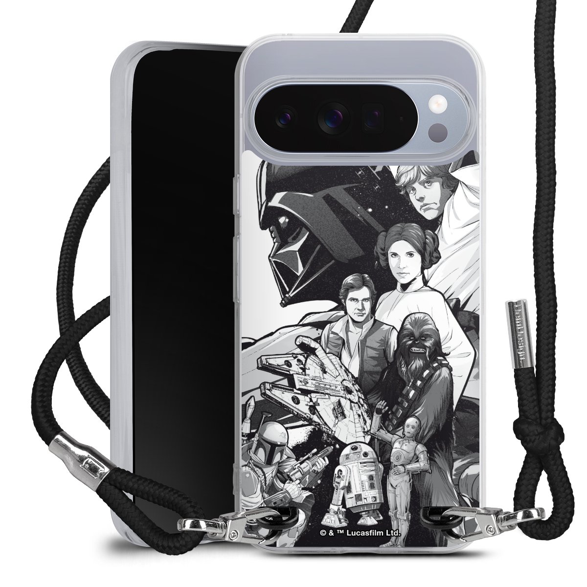 Darth Vader, C3PO, R2D2 und Meister Yoda findest Du in unserem Star Wars Shop auf DeinDesign. Natürlich gibt es auch Star Wars Handyhüllen mit den legendären Charakteren Luke Skywalker, Prinzessin Leia und Han Solo, den Helden der ersten Saga. Wer jedoch die Hauptfiguren der neuen Star Wars Filme ins Herz geschlossen hat, kann auch Finn und Rey mit ihren mächtigen Waffen auf der Rückseite seines Smartphones haben. Die vielseitigen Schutzhüllen in verschiedenen Ausführungen sind das perfekte Geschenk für alle Star Wars Fans, die ihrem Smartphone eine individuelle Note verleihen wollen.