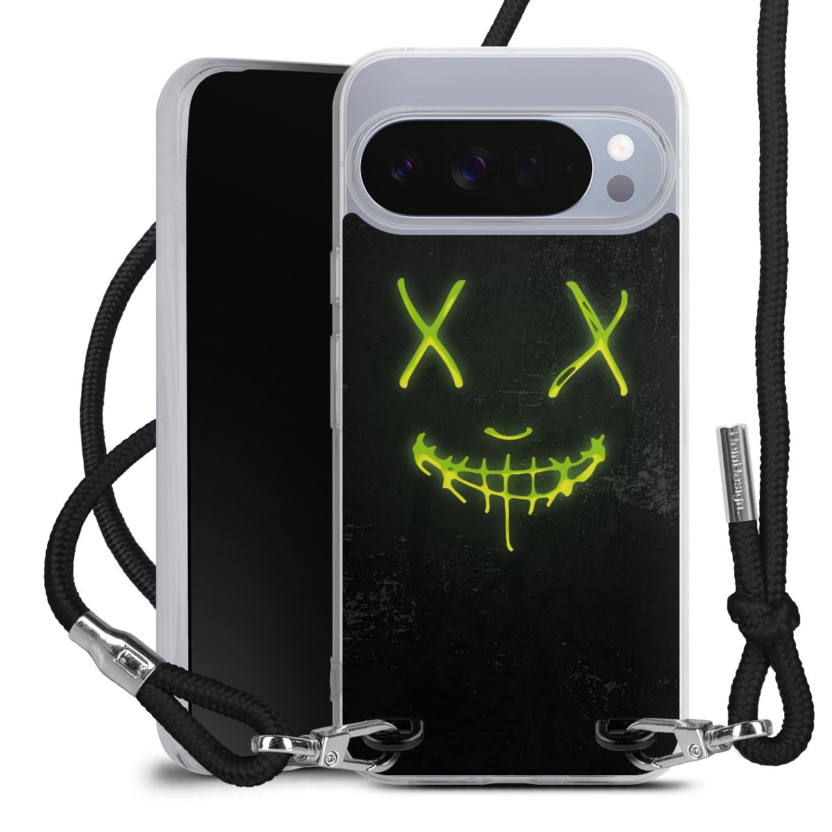Habe Dein Handy, dank der flexiblen Silikon Handyhülle zum Umhängen mit der Handykette aus Stoff, immer griffbereit.