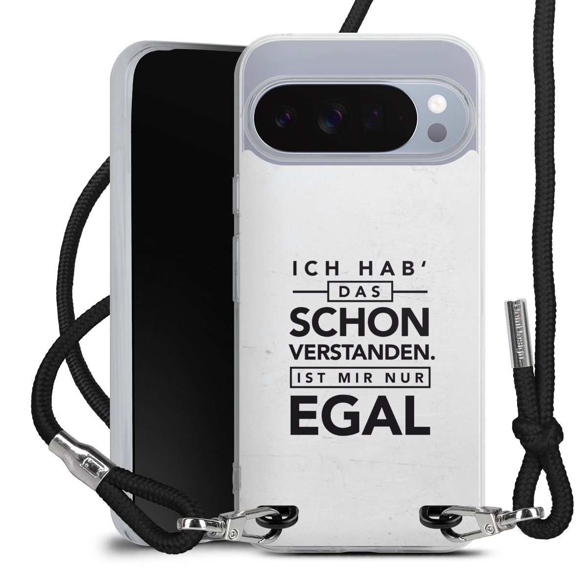Habe Dein Handy, dank der flexiblen Silikon Handyhülle zum Umhängen mit der Handykette aus Stoff, immer griffbereit.