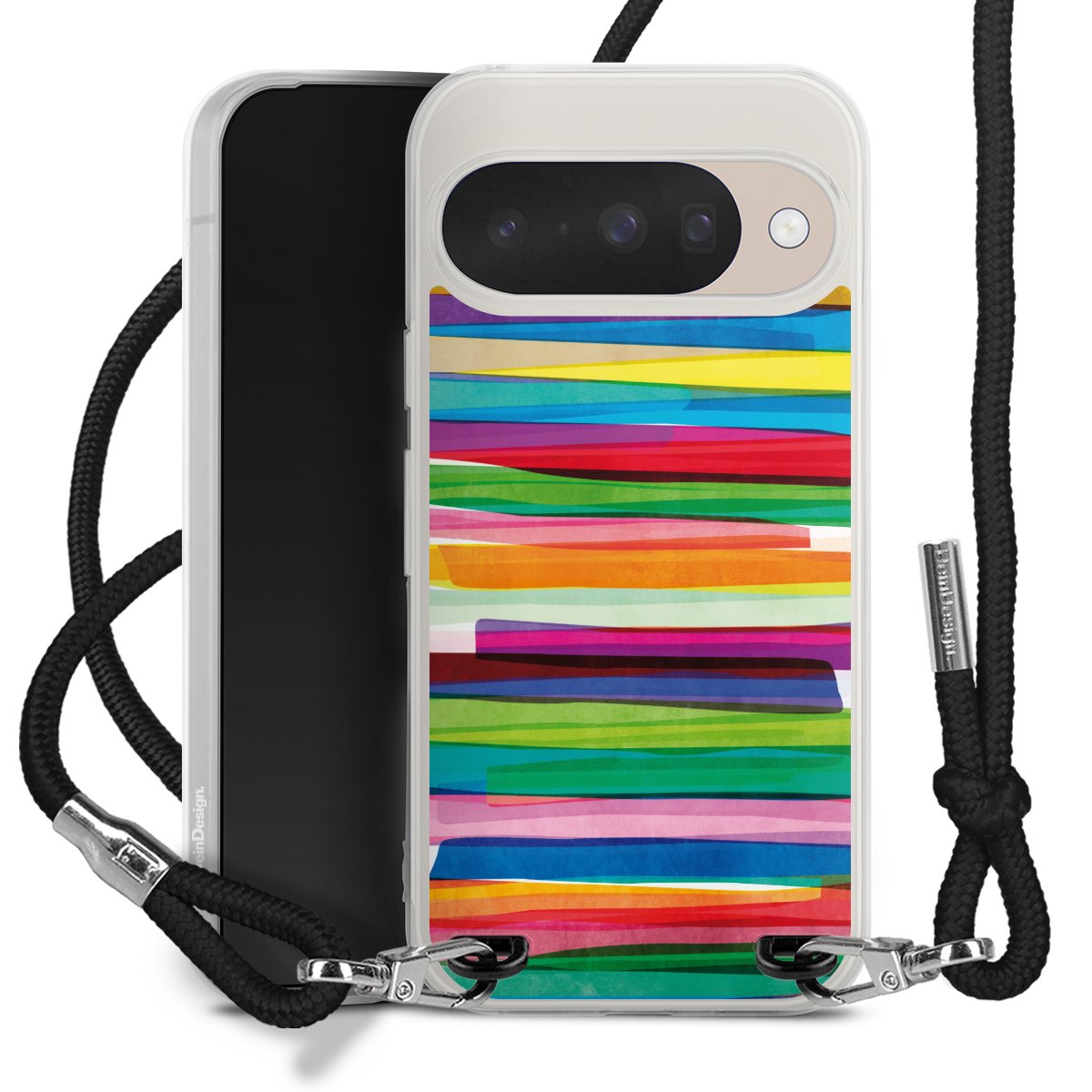 Habe Dein Handy, dank der flexiblen Silikon Handyhülle zum Umhängen mit der Handykette aus Stoff, immer griffbereit.