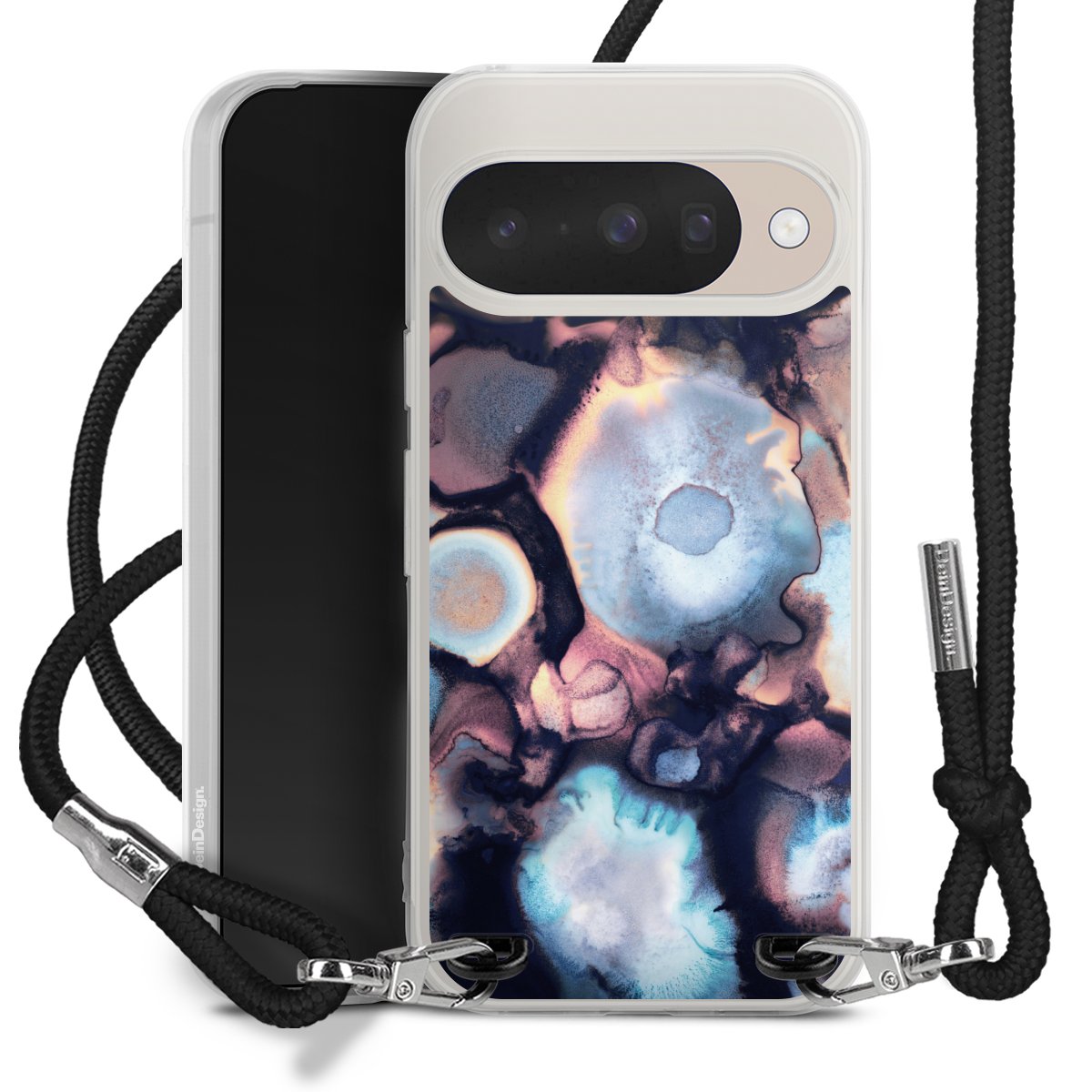 Habe Dein Handy, dank der flexiblen Silikon Handyhülle zum Umhängen mit der Handykette aus Stoff, immer griffbereit.