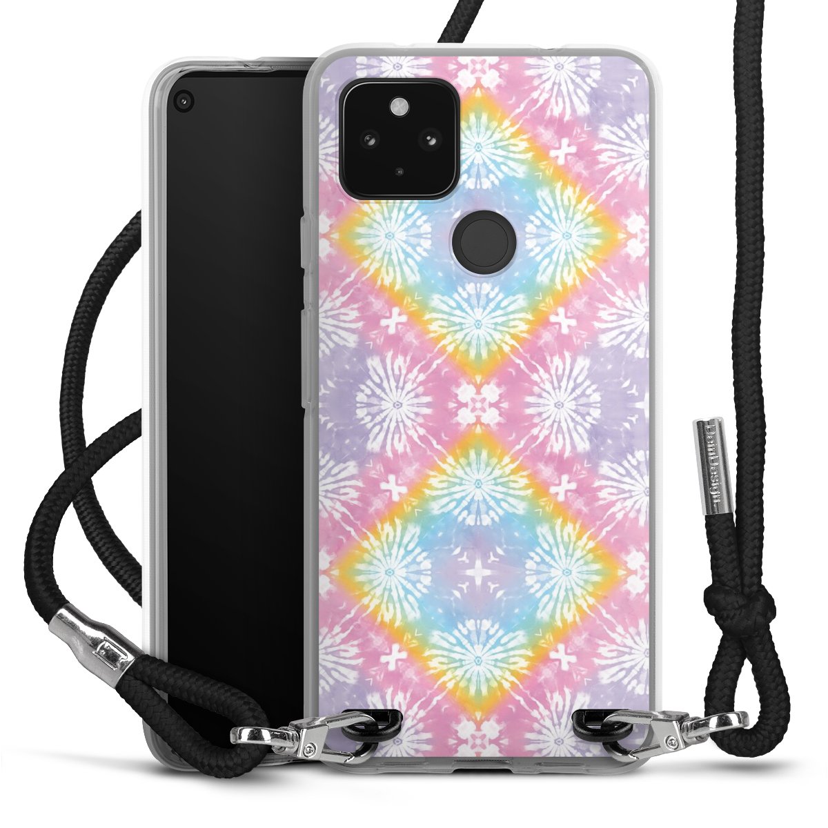 Habe Dein Handy, dank der flexiblen Silikon Handyhülle zum Umhängen mit der Handykette aus Stoff, immer griffbereit.
