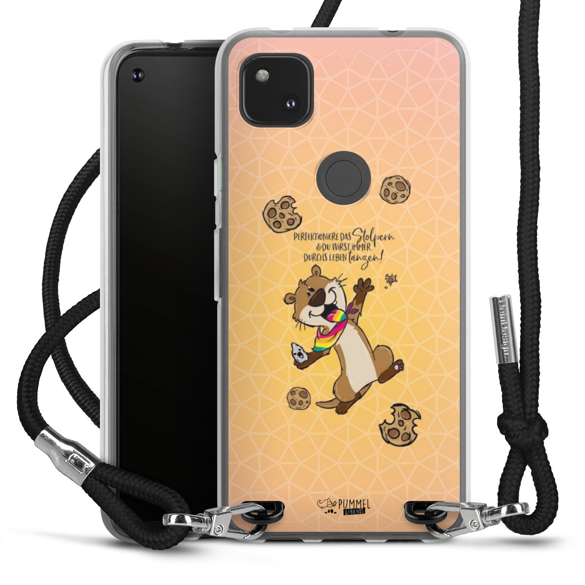 Habe Dein Handy, dank der flexiblen Silikon Handyhülle zum Umhängen mit der Handykette aus Stoff, immer griffbereit.