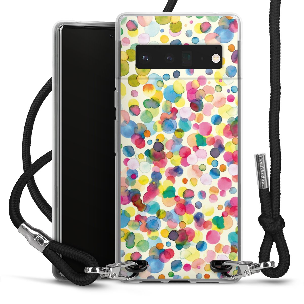 Habe Dein Handy, dank der flexiblen Silikon Handyhülle zum Umhängen mit der Handykette aus Stoff, immer griffbereit.