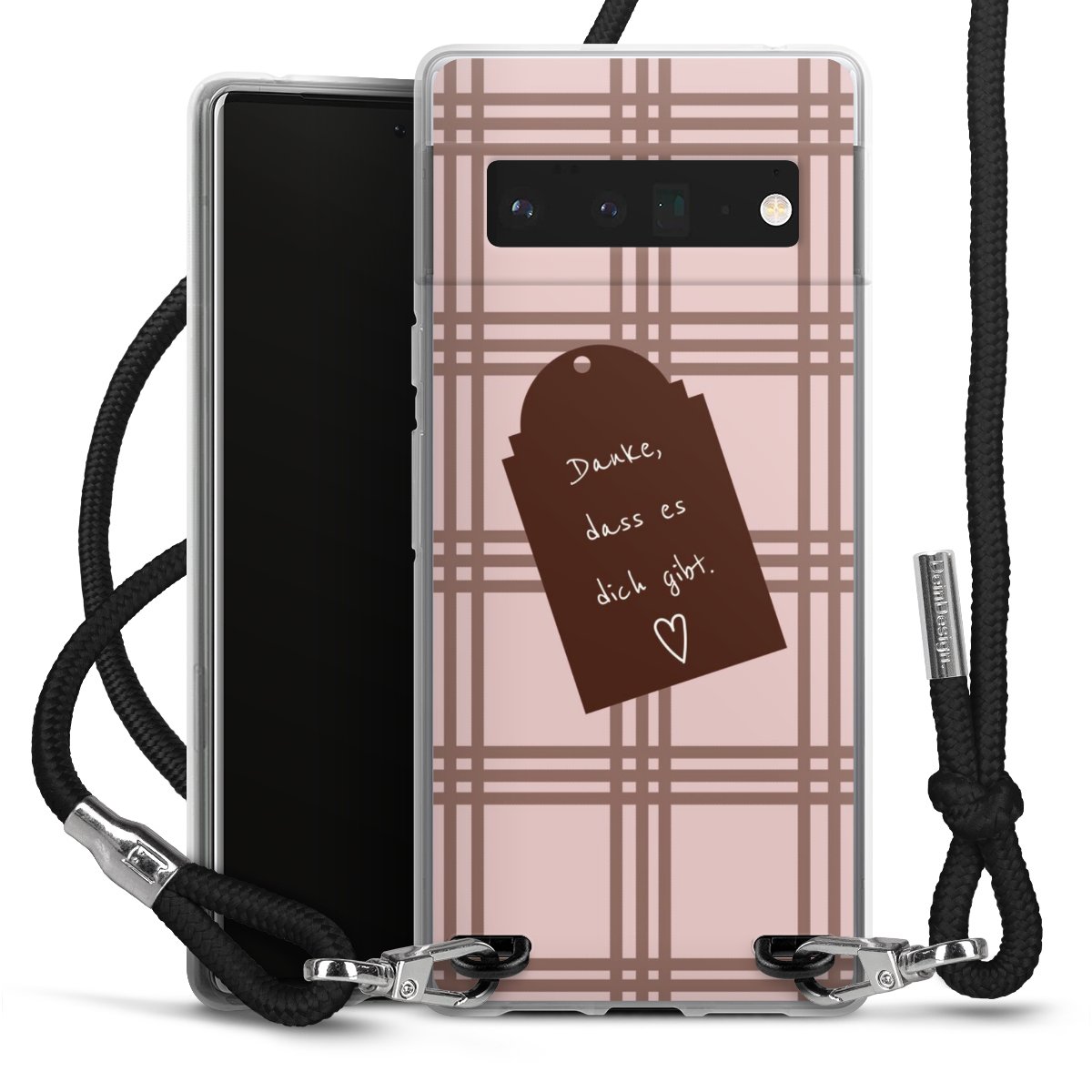 Habe Dein Handy, dank der flexiblen Silikon Handyhülle zum Umhängen mit der Handykette aus Stoff, immer griffbereit.