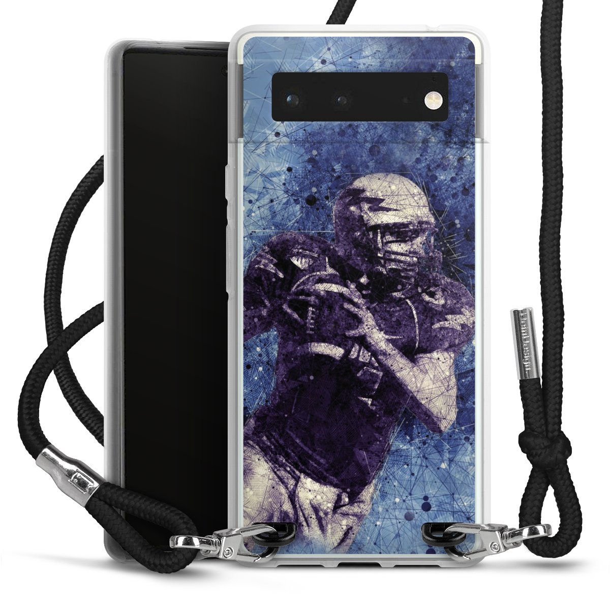 Bei dieser Handyhülle nutzen wir das solide Direktdruck-Verfahren, weshalb der Druckbereich ausschließlich die Rückseite umfasst und der Rand hingegen unbedruckt bleibt. Das Case zum Umhängen kann sowohl unbedruckt, als auch vollflächig oder partiell bedruckt bestellt werden. Wähle für Dein Design entweder eines unserer exklusiven Shop-Motive, oder werde kreativ und gestalte Dein Wunschdesign zum Beispiel mit Fotos und Overlays selbst. Designe Dir Dein persönliches Trend-Accessoire und setze ein individuelles Statement auf den Straßen!