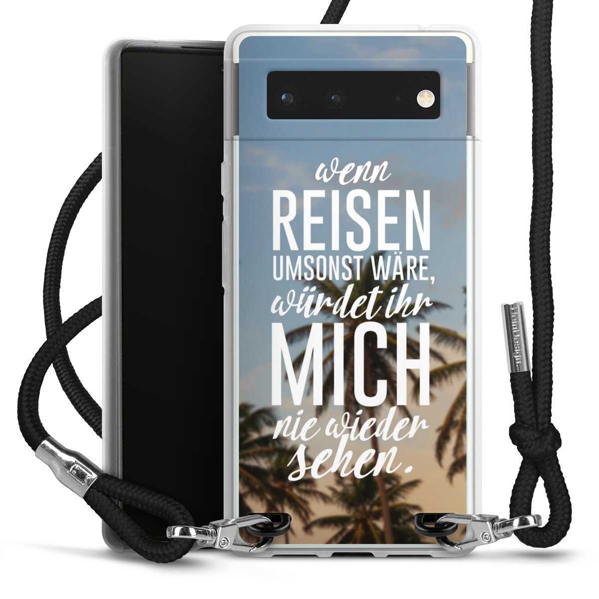 Bei dieser Handyhülle nutzen wir das solide Direktdruck-Verfahren, weshalb der Druckbereich ausschließlich die Rückseite umfasst und der Rand hingegen unbedruckt bleibt. Das Case zum Umhängen kann sowohl unbedruckt, als auch vollflächig oder partiell bedruckt bestellt werden. Wähle für Dein Design entweder eines unserer exklusiven Shop-Motive, oder werde kreativ und gestalte Dein Wunschdesign zum Beispiel mit Fotos und Overlays selbst. Designe Dir Dein persönliches Trend-Accessoire und setze ein individuelles Statement auf den Straßen!