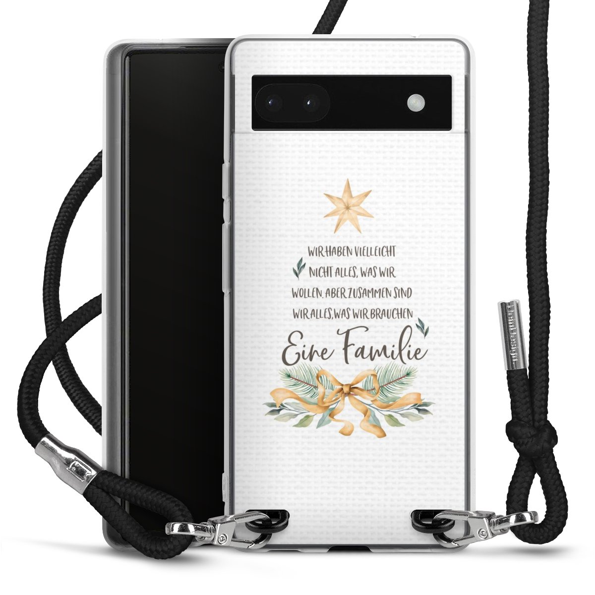 Die transparente Silikonhülle besteht aus flexiblen TPU (thermoplastisches Polyurethan) und bietet zugleich robusten Schutz. Durch das langlebige, bruchsichere Material ist die Hülle biegsam und formbeständig zugleich. Das stylische Trend-Accessoire liegt griffig in der Hand und wird optimal von der Handykette aus Stoff (Polyester) ergänzt. Das geflochtene Stoffband ist ca. 1,70 Meter lang mit einem Durchmesser von ca. 0,5cm. Aufgrund der besonderen Knotentechnik ist das Band durch einfaches Ziehen in der Länge verstellbar, damit Du es individuell nach Deinen Wünschen anpassen kannst. Das praktische Case zum Umhängen ist mit dem Stoffband in den Farben Schwarz, Rot, Rosa, Grau, Senfgelb, Bordeaux und Royalblau erhältlich. Die Enden des Stoffbandes sind mit metallischen Endkappen umfasst und somit sicher vor dem Ausfransen geschützt.