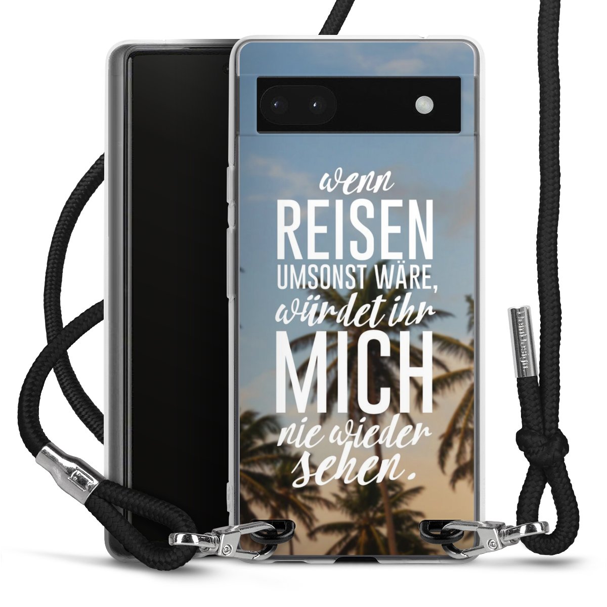 Bei dieser Handyhülle nutzen wir das solide Direktdruck-Verfahren, weshalb der Druckbereich ausschließlich die Rückseite umfasst und der Rand hingegen unbedruckt bleibt. Das Case zum Umhängen kann sowohl unbedruckt, als auch vollflächig oder partiell bedruckt bestellt werden. Wähle für Dein Design entweder eines unserer exklusiven Shop-Motive, oder werde kreativ und gestalte Dein Wunschdesign zum Beispiel mit Fotos und Overlays selbst. Designe Dir Dein persönliches Trend-Accessoire und setze ein individuelles Statement auf den Straßen!