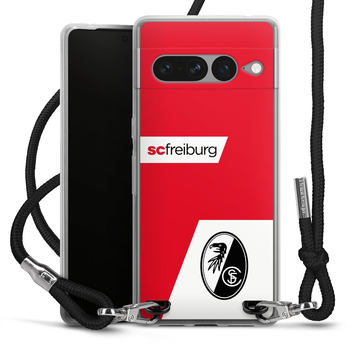 Bei DeinDesign kannst Du Dir eine individuelle SC-Freiburg-Handyhülle aussuchen, auf der das stilvolle schwarz-weiße Logo mit dem Greifenkopf zu sehen ist. Durch eine solche Hülle erhält Dein Smartphone ein unverkennbar individuelles Design. Der SC-Freiburg-Shop bietet lizensierte Fanartikel für alle Fans der Breisgau-Brasilianer.
