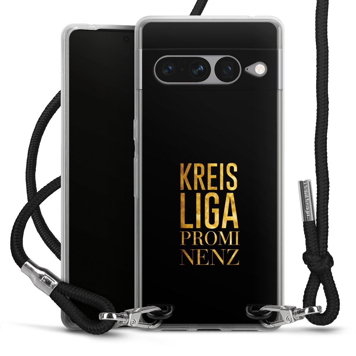 Habe Dein Handy, dank der flexiblen Silikon Handyhülle zum Umhängen mit der Handykette aus Stoff, immer griffbereit.