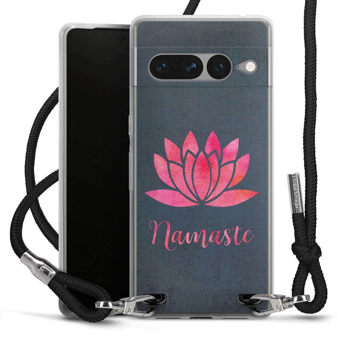 Habe Dein Handy, dank der flexiblen Silikon Handyhülle zum Umhängen mit der Handykette aus Stoff, immer griffbereit.