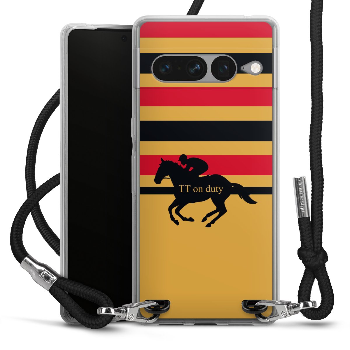 Habe Dein Handy, dank der flexiblen Silikon Handyhülle zum Umhängen mit der Handykette aus Stoff, immer griffbereit.