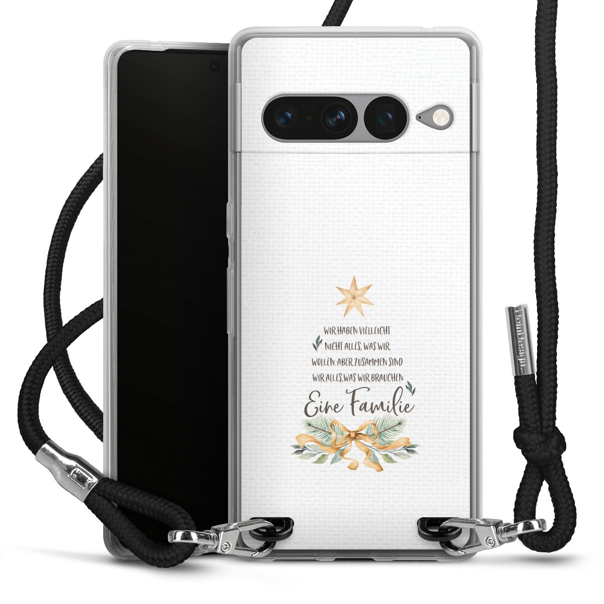 Die transparente Silikonhülle besteht aus flexiblen TPU (thermoplastisches Polyurethan) und bietet zugleich robusten Schutz. Durch das langlebige, bruchsichere Material ist die Hülle biegsam und formbeständig zugleich. Das stylische Trend-Accessoire liegt griffig in der Hand und wird optimal von der Handykette aus Stoff (Polyester) ergänzt. Das geflochtene Stoffband ist ca. 1,70 Meter lang mit einem Durchmesser von ca. 0,5cm. Aufgrund der besonderen Knotentechnik ist das Band durch einfaches Ziehen in der Länge verstellbar, damit Du es individuell nach Deinen Wünschen anpassen kannst. Das praktische Case zum Umhängen ist mit dem Stoffband in den Farben Schwarz, Rot, Rosa, Grau, Senfgelb, Bordeaux und Royalblau erhältlich. Die Enden des Stoffbandes sind mit metallischen Endkappen umfasst und somit sicher vor dem Ausfransen geschützt.