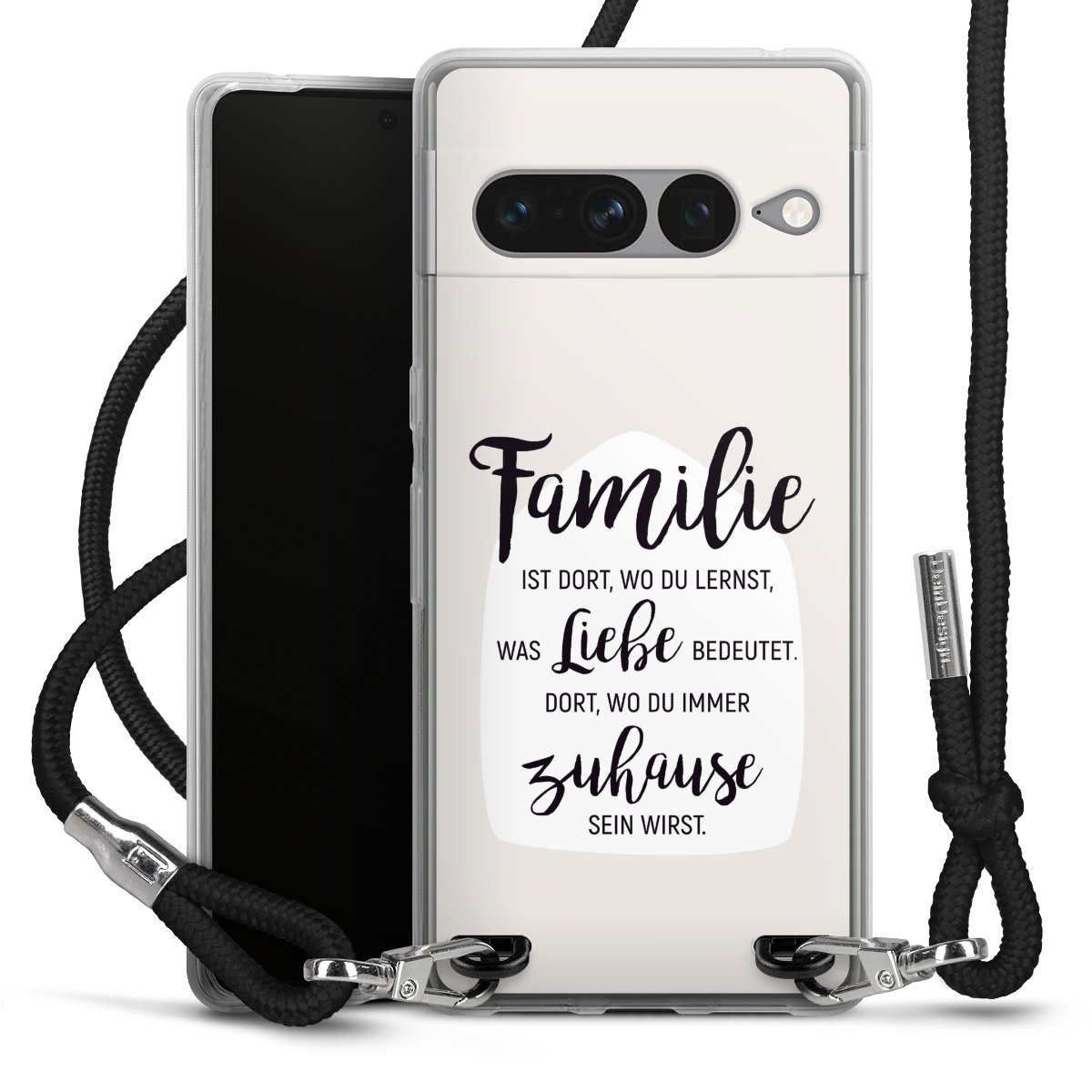Habe Dein Handy, dank der flexiblen Silikon Handyhülle zum Umhängen mit der Handykette aus Stoff, immer griffbereit.