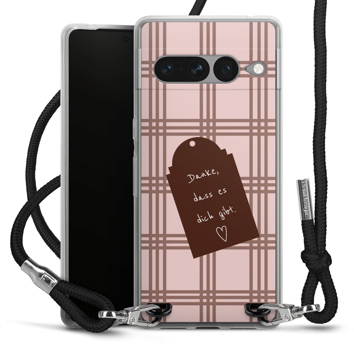 Habe Dein Handy, dank der flexiblen Silikon Handyhülle zum Umhängen mit der Handykette aus Stoff, immer griffbereit.