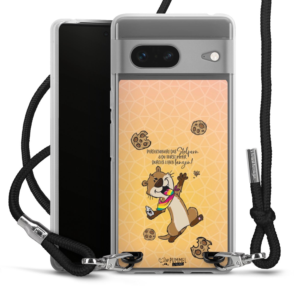 Habe Dein Handy, dank der flexiblen Silikon Handyhülle zum Umhängen mit der Handykette aus Stoff, immer griffbereit.
