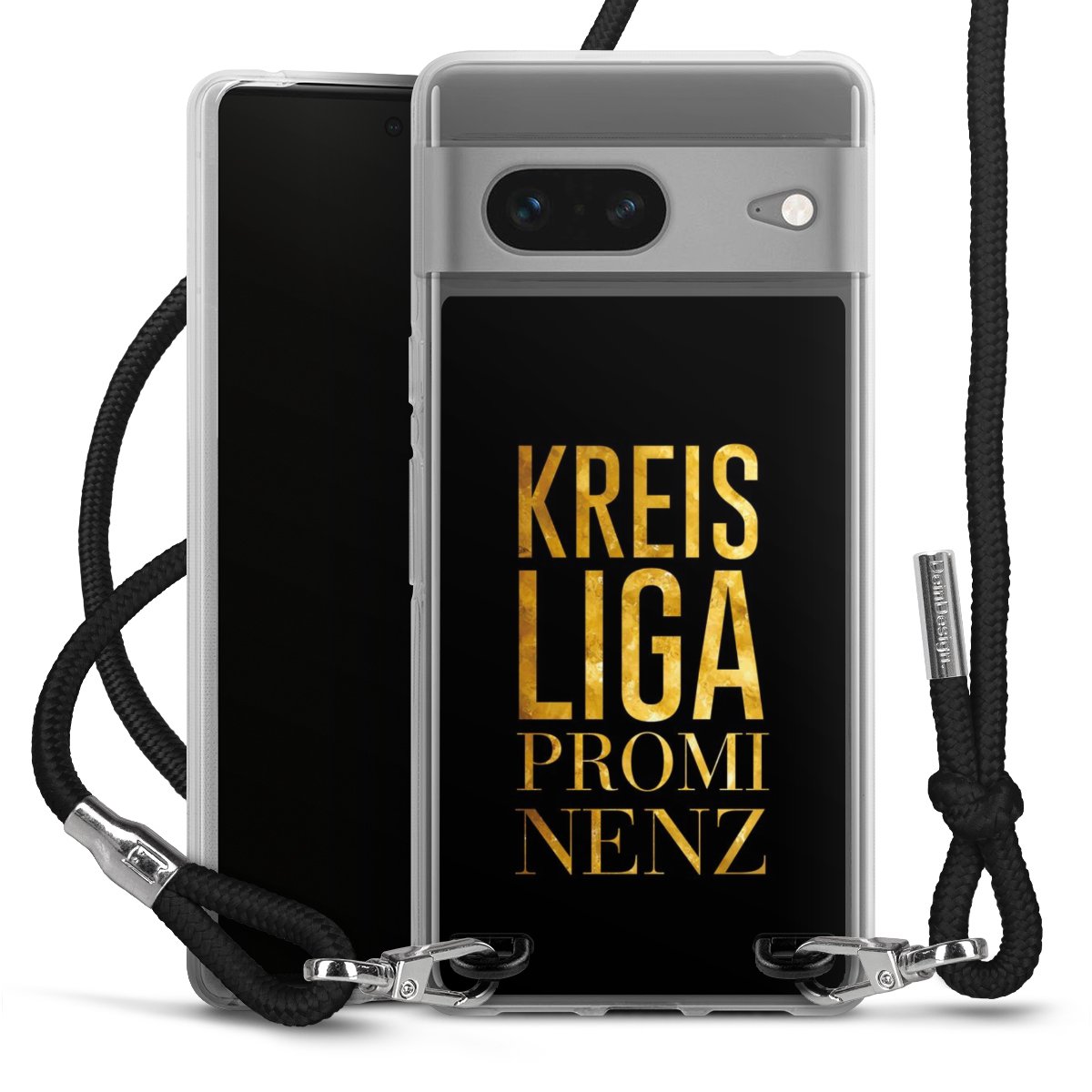 Habe Dein Handy, dank der flexiblen Silikon Handyhülle zum Umhängen mit der Handykette aus Stoff, immer griffbereit.