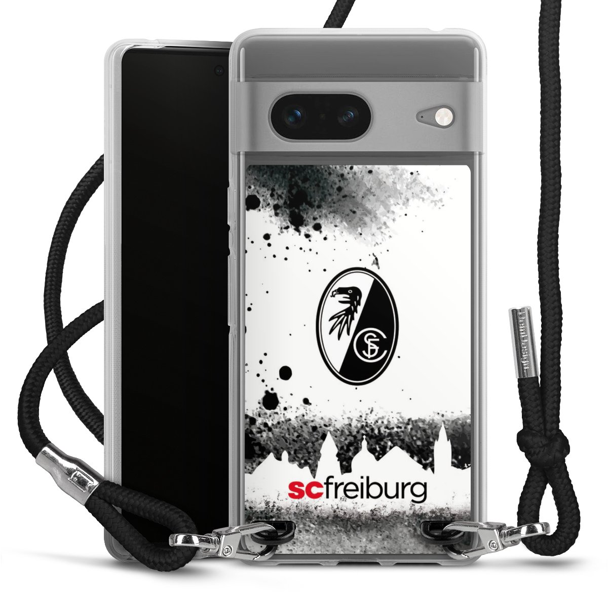 Bei DeinDesign kannst Du Dir eine individuelle SC-Freiburg-Handyhülle aussuchen, auf der das stilvolle schwarz-weiße Logo mit dem Greifenkopf zu sehen ist. Durch eine solche Hülle erhält Dein Smartphone ein unverkennbar individuelles Design. Der SC-Freiburg-Shop bietet lizensierte Fanartikel für alle Fans der Breisgau-Brasilianer.