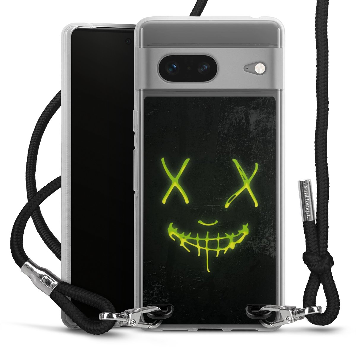 Habe Dein Handy, dank der flexiblen Silikon Handyhülle zum Umhängen mit der Handykette aus Stoff, immer griffbereit.